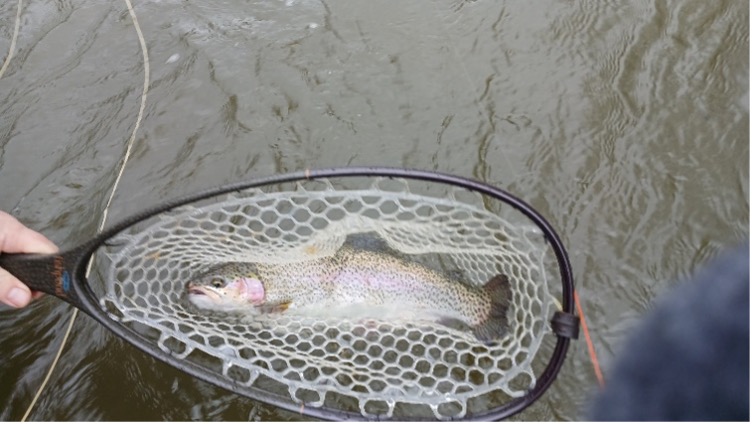 Sunday morning at 8:00 was a group breakfast at IHOP and then back out to the Casselman. Everyone fished the River Road pull-offs and at Farmer‘s Lane. Sunday’s weather was cold (40 degrees) and a little windy with bright sun. At the river, water flow and turbidity had reduced a bit. Karan caught a rainbow of about 9” on a #16 green caddis nymph. He got several strikes with his combo of a caddis nymph dropper with a #16 caddis emerger above it. Most people fished until mid-afternoon and then headed back home.