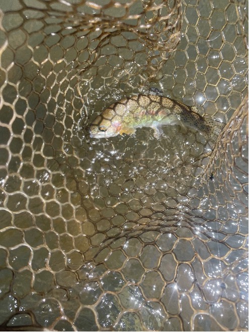 I drove out to the Casselman River on Friday so I wouldn’t have to get up before the sun on Saturday morning to get to the outing on time (in my old age it makes for a much easier and less tiring day). Lou and Ken also drove out on Friday. I got out there at lunchtime and went over to the Savage River to fish there first, but the water was up a bit. I spent about an hour there with no luck and headed to the Casselman. The weather got a little wetter as the day went on. There was light rain on and off and then later a heavy downpour with some thunder in the distance. I quit for the day at 5:30 and went for dinner. Lou and Ken stopped by my room after dinner and we recalled our day’s adventures. Lou and Ken both had luck and caught fish on the Casselman before the heavy rain. That afternoon, Ken fished for about an hour at Farmer’s Lane using Pete Yarrington’s Henryville Special (from our chapter’s Fly-Tying Meeting). He caught a 10” rainbow and lost 2 others. Lou also had success, catching a couple of Rainbows using a Henryville Special and then a peacock deer caddis.