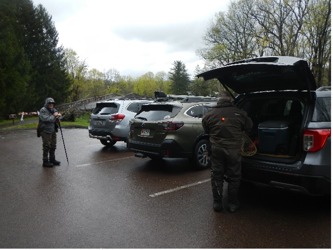 I drove out to the Casselman River on Friday so I wouldn’t have to get up before the sun on Saturday morning to get to the outing on time (in my old age it makes for a much easier and less tiring day). Lou and Ken also drove out on Friday. I got out there at lunchtime and went over to the Savage River to fish there first, but the water was up a bit. I spent about an hour there with no luck and headed to the Casselman. The weather got a little wetter as the day went on. There was light rain on and off and then later a heavy downpour with some thunder in the distance. I quit for the day at 5:30 and went for dinner. Lou and Ken stopped by my room after dinner and we recalled our day’s adventures. Lou and Ken both had luck and caught fish on the Casselman before the heavy rain. That afternoon, Ken fished for about an hour at Farmer’s Lane using Pete Yarrington’s Henryville Special (from our chapter’s Fly-Tying Meeting). He caught a 10” rainbow and lost 2 others. Lou also had success, catching a couple of Rainbows using a Henryville Special and then a peacock deer caddis.