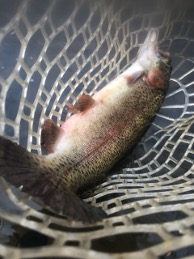 Sunday morning at 8:00 was a group breakfast at IHOP and then back out to the Casselman. Everyone fished the River Road pull-offs and at Farmer‘s Lane. Sunday’s weather was cold (40 degrees) and a little windy with bright sun. At the river, water flow and turbidity had reduced a bit. Karan caught a rainbow of about 9” on a #16 green caddis nymph. He got several strikes with his combo of a caddis nymph dropper with a #16 caddis emerger above it. Most people fished until mid-afternoon and then headed back home.