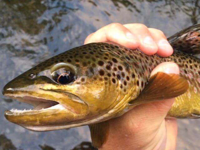 Our newbie Joe is becoming, or is, a great trout magnet. He left us for hours, returning late in the night, and found a secrete spot and was able to catch some big browns in the 14-16” range. You will have to ask him where is his secret spot. I am bound to secrecy. I believe he was using sulfurs and dark caddis dry flies and a pheasant tail soft hackle (with a green thorax). Joe did give me his favorite pheasant tail soft hackle that he ties, but I lost it in a bush!